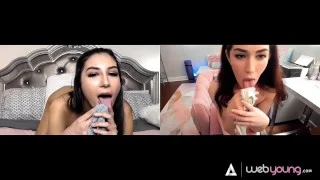 Gorgeous Teens Gianna Dior & Evelyn Claire Have Distant Video Call Sex For Their First Date