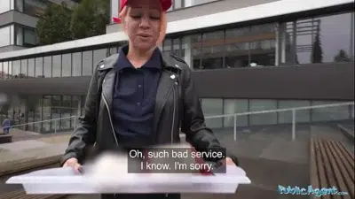 Public Agent Waitress makes a mess of his pants and offers to fuck him in the toilet